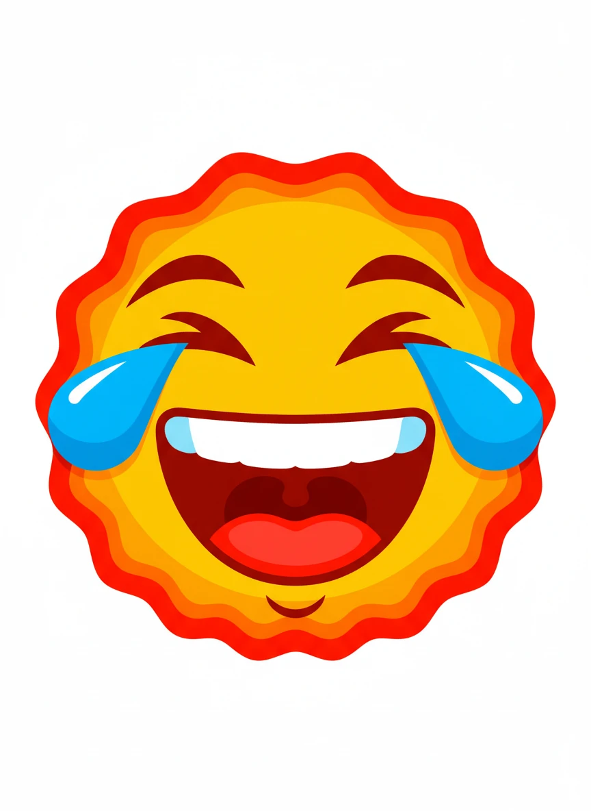Generate a high-energy laughing face using an emoji generator, mouth wide open with visible joy and dynamic curved lines. Emphasize contrast and saturated colors so the emotion reads instantly. Maintain clean edges suitable for app icons and stickers. bold, expressive, vibrant — NEG: dull colors, realism, clutter, background scenery, distortion