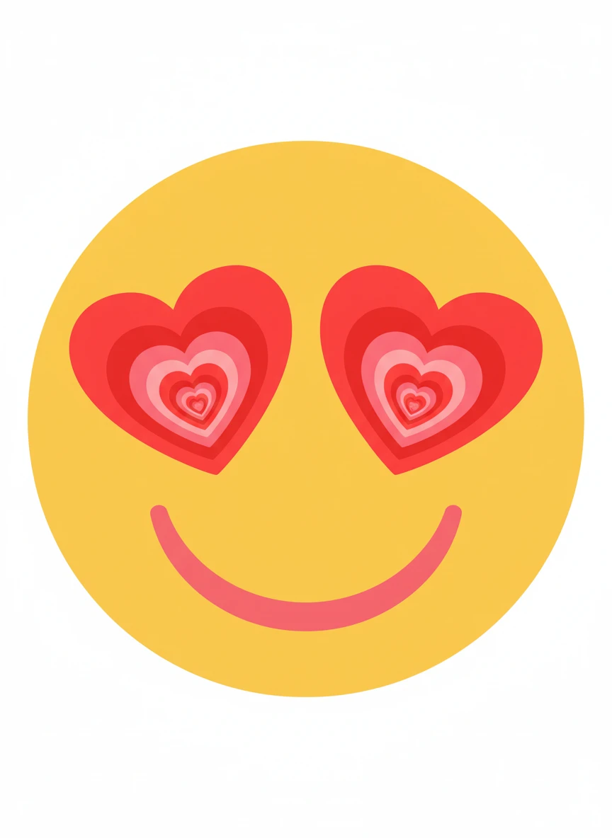 Design a romantic heart-eyes face using an emoji generator, with vivid hearts and a joyful smile. Colors should be bright and cheerful, with smooth vector-style lines. Ensure the emoji feels universal and friendly. romantic, bright, vector — NEG: photorealism, excessive gradients, text, logos, grain