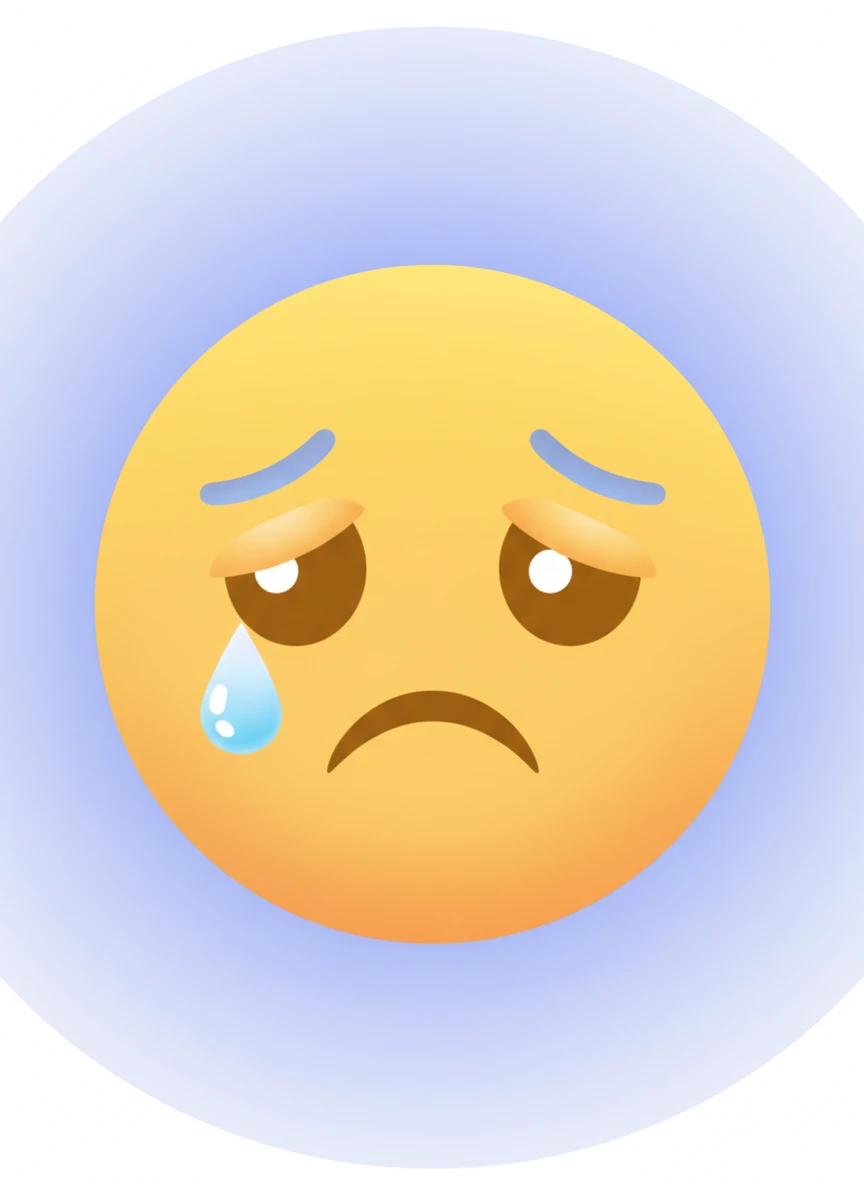Illustrate a gentle sad expression with a single tear using an emoji generator, focusing on emotional clarity rather than realism. Soft gradients and rounded forms should communicate empathy and calm. Ensure the face remains readable at small scales. emotive, soft, minimal — NEG: exaggerated realism, heavy textures, clutter, harsh lighting, noise