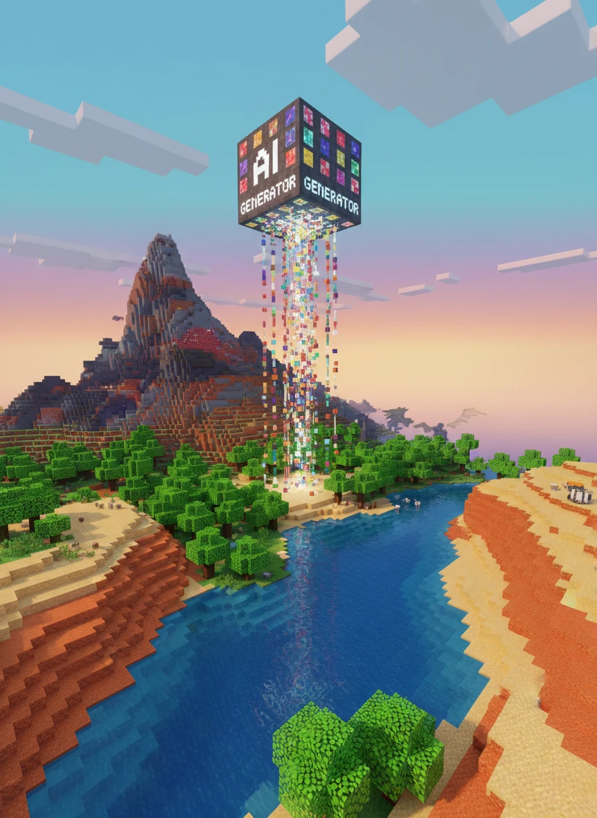 ai minecraft generator blocky world creation voxel landscape vibrant colors high detail realistic global illumination ultra sharp focus