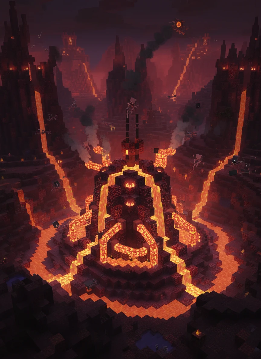 ai minecraft generator nether style world lava glow dark atmosphere high contrast lighting
