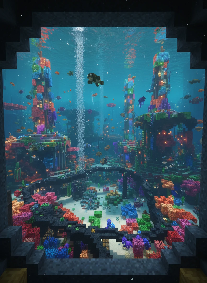 minecraft ai world generator underwater ocean biome coral blocks caustic light effects