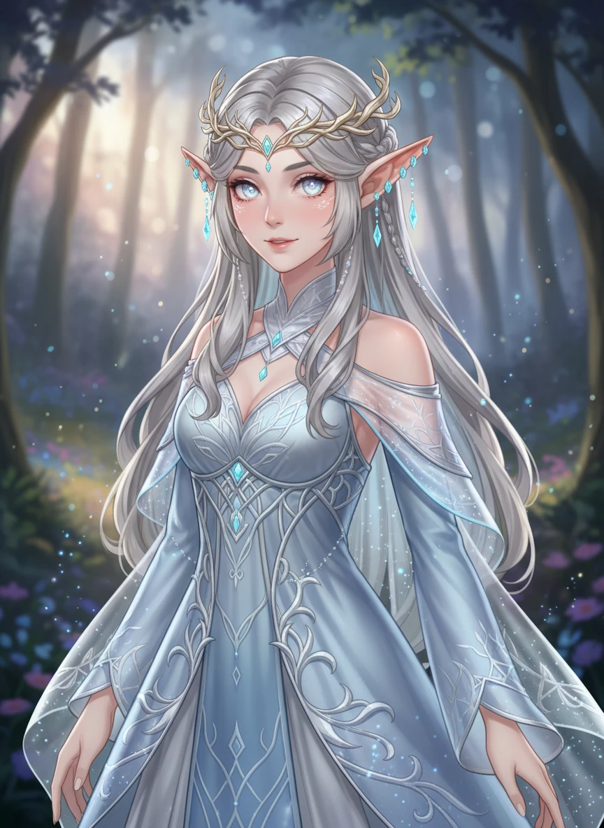 Create a fantasy elf VTuber avatar with elegant ears, glowing eyes, and magical clothing using an AI VTuber Maker. The design should balance fantasy aesthetics with clarity for real-time facial tracking. Soft lighting and a calm expression enhance livestream presence. fantasy, elf, vtuber NEG: dark lighting, hyperrealism, messy details, distorted proportions, background clutter, artifacts