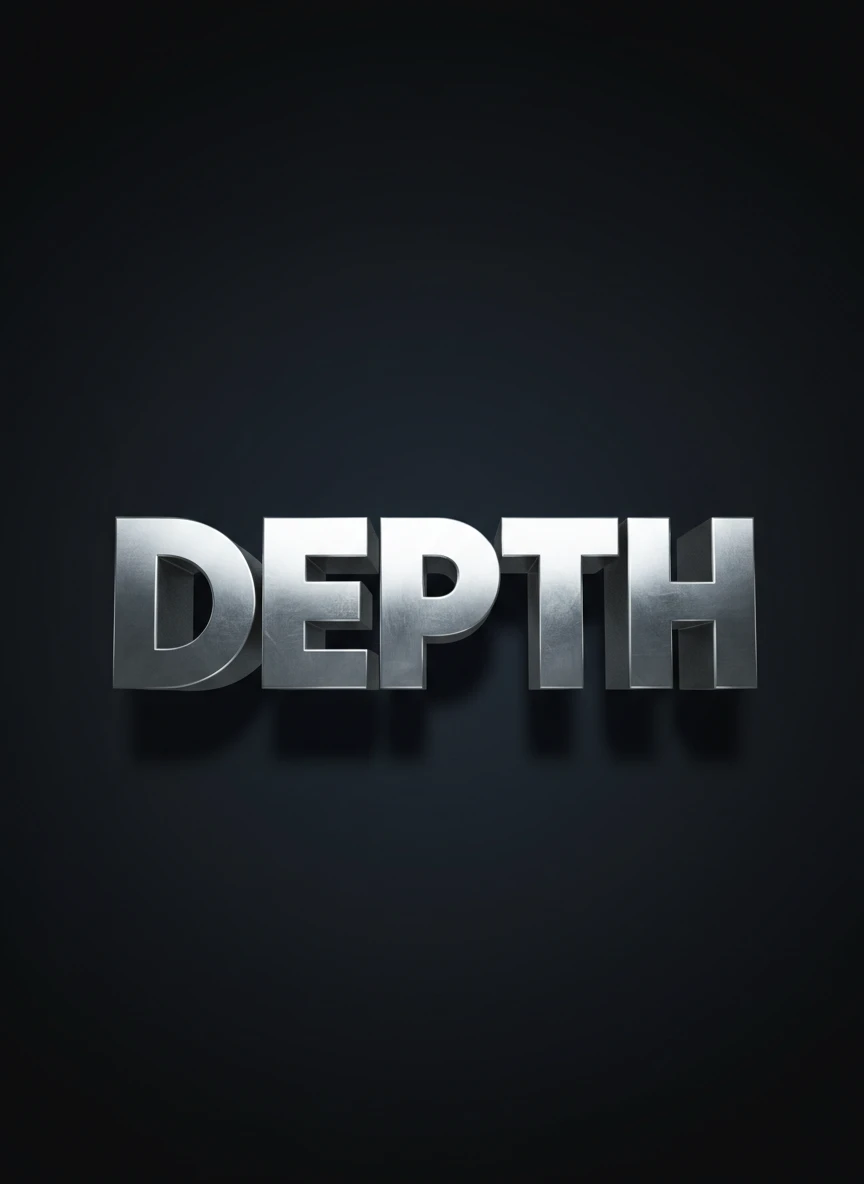 Create a word art generator design featuring bold 3D metallic letters with realistic reflections and shadows. The word should appear solid and sculpted, floating slightly above a dark gradient background. Emphasize depth and material realism. Style tags: 3D, metallic, dramatic NEG: flat shading, plastic look, jagged edges, poor perspective, washed-out highlights