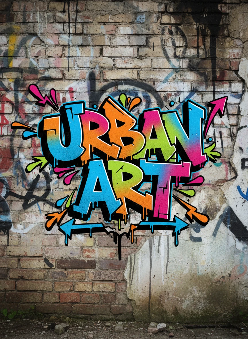Design a bold word art generator visual inspired by urban graffiti culture. The letters should be stylized with spray paint textures, drips, and dynamic angles while remaining readable. Place the text against a concrete or brick wall backdrop. Style tags: graffiti, street-art, urban NEG: illegible lettering, flat colors, clean corporate style, low detail, symmetry overload